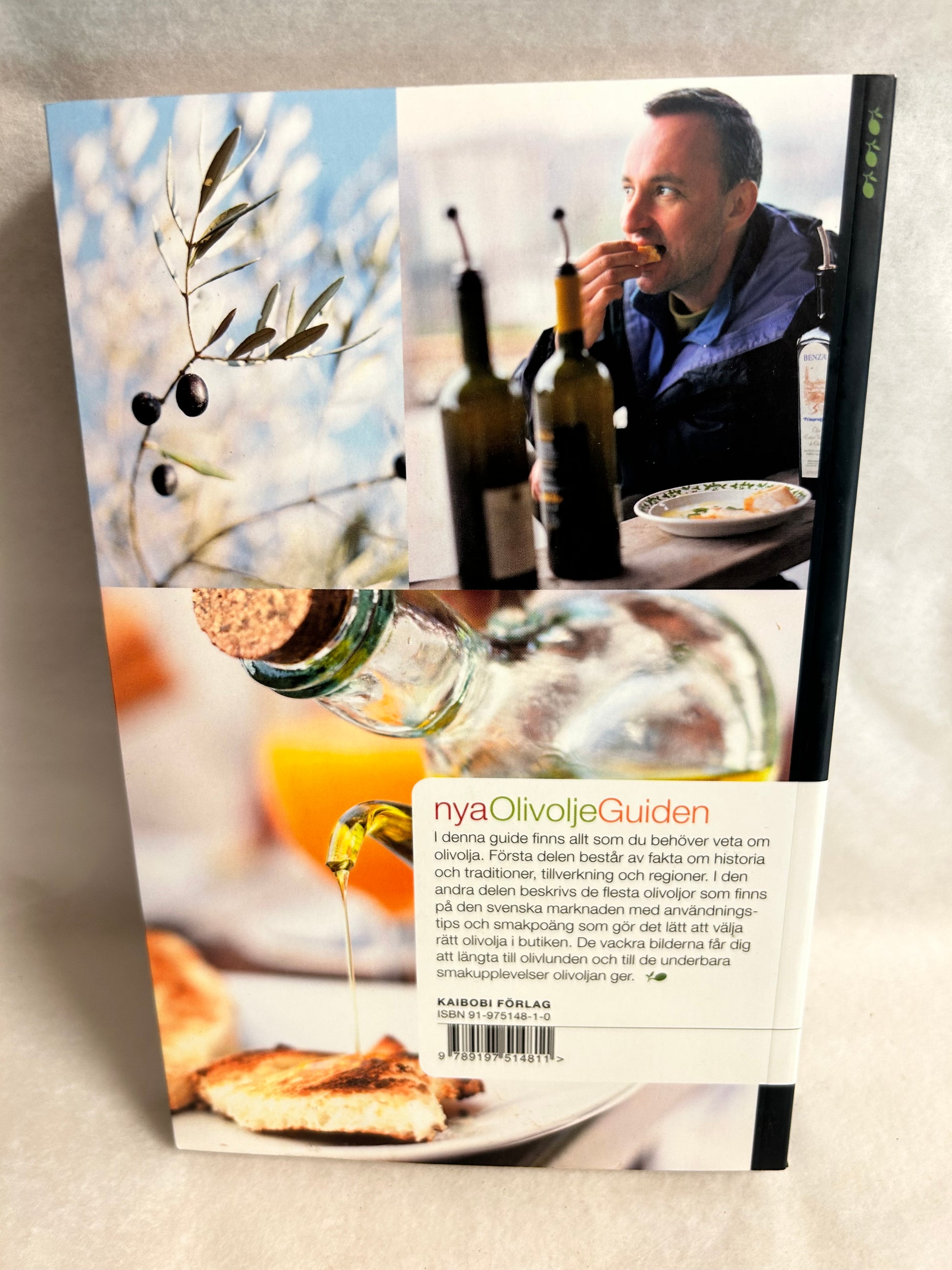 I denna guide finns allt som du behöver veta om olivolja. Första delen består av fakta om historia och traditioner, tillverkning och regioner. I den andra delen beskrivs de flesta olivoljor som finns på den svenska marknaden med användningstips och smakpoäng som gör det lätt välja rätt olivolja i butiken. De vackra bilderna får dig att längta till olivlunden och till de underbara smakupplevelser olivoljan ger.